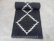 Black & White Hemp Jute Runner Rug – Handwoven Eco Stair Runner - 2x3 Feet / 60 x 90 Cm Doormat