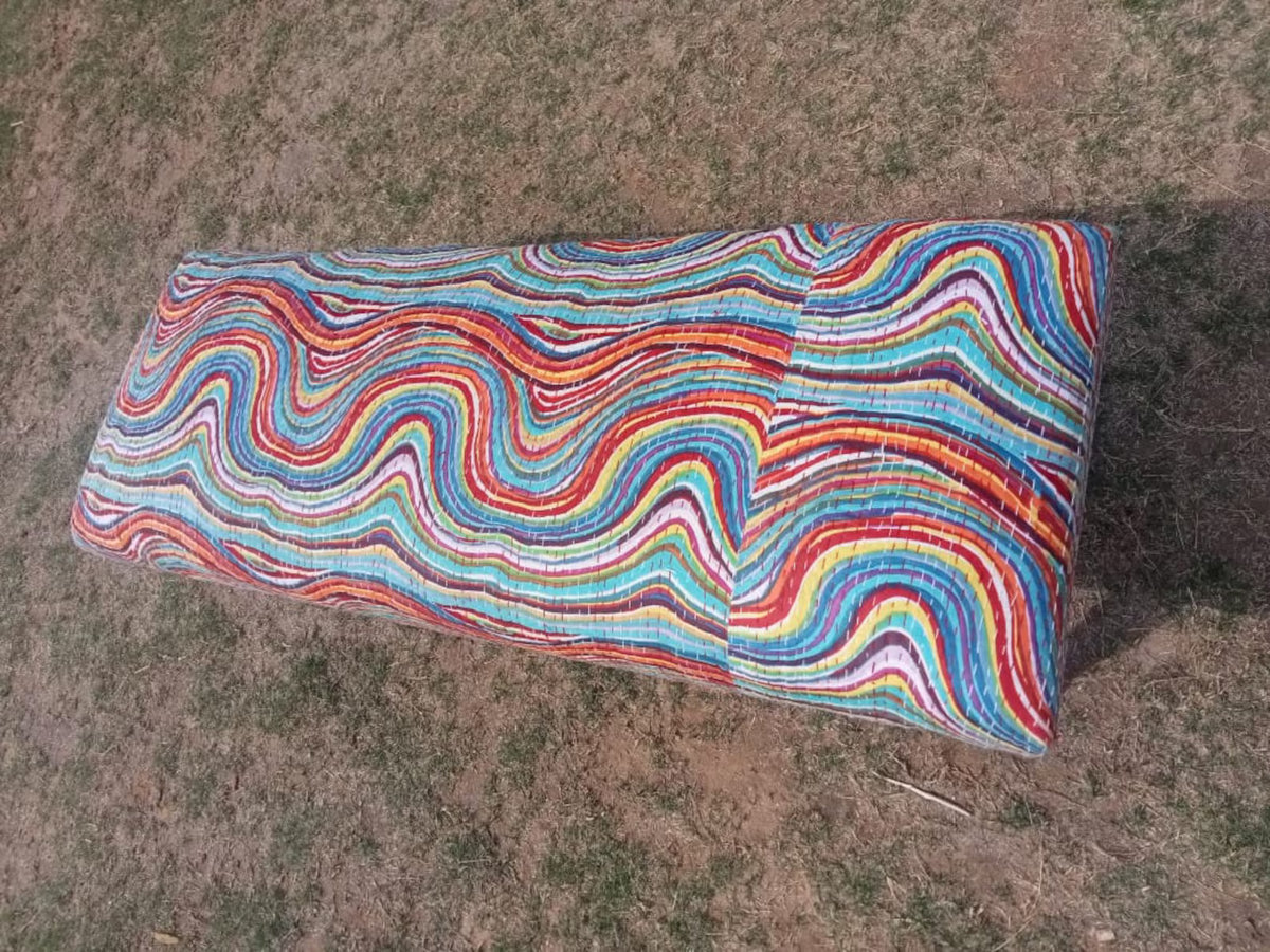 Because Kilim textiles are handcrafted, every bench features slight variations in pattern placement, making each piece truly one of a kind.