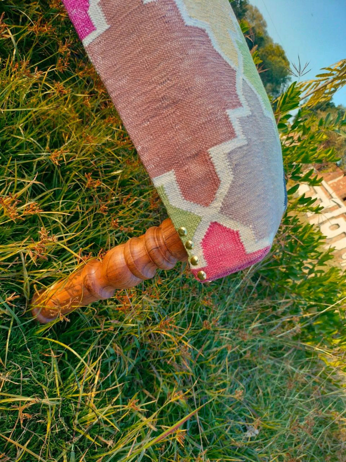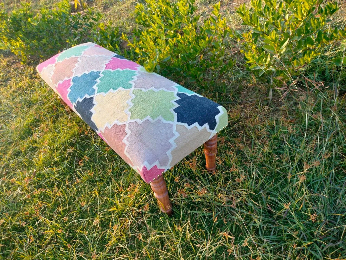 Handmade Kilim Bench – Turkish Rug Upholstered Wood Work Ottoman Seating