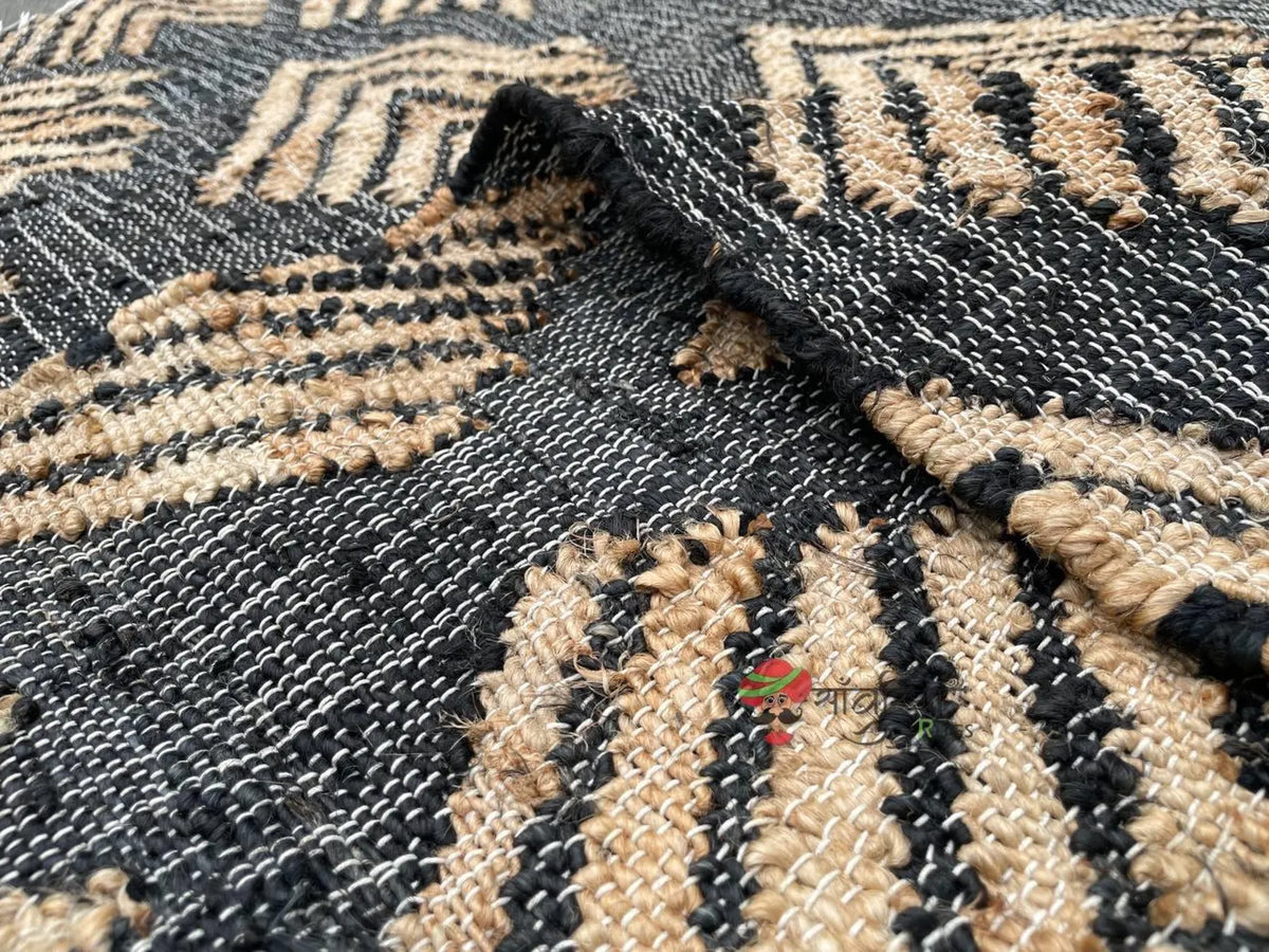 Add warmth, texture, and artisanal beauty to your space with our Handmade Black Jute Cotton Rug, a piece that blends traditional weaving with modern design. Meticulously handwoven by skilled Indian artisans, this rug showcases the harmony of nature and craftsmanship through a stunning geometric pattern and natural fibers.