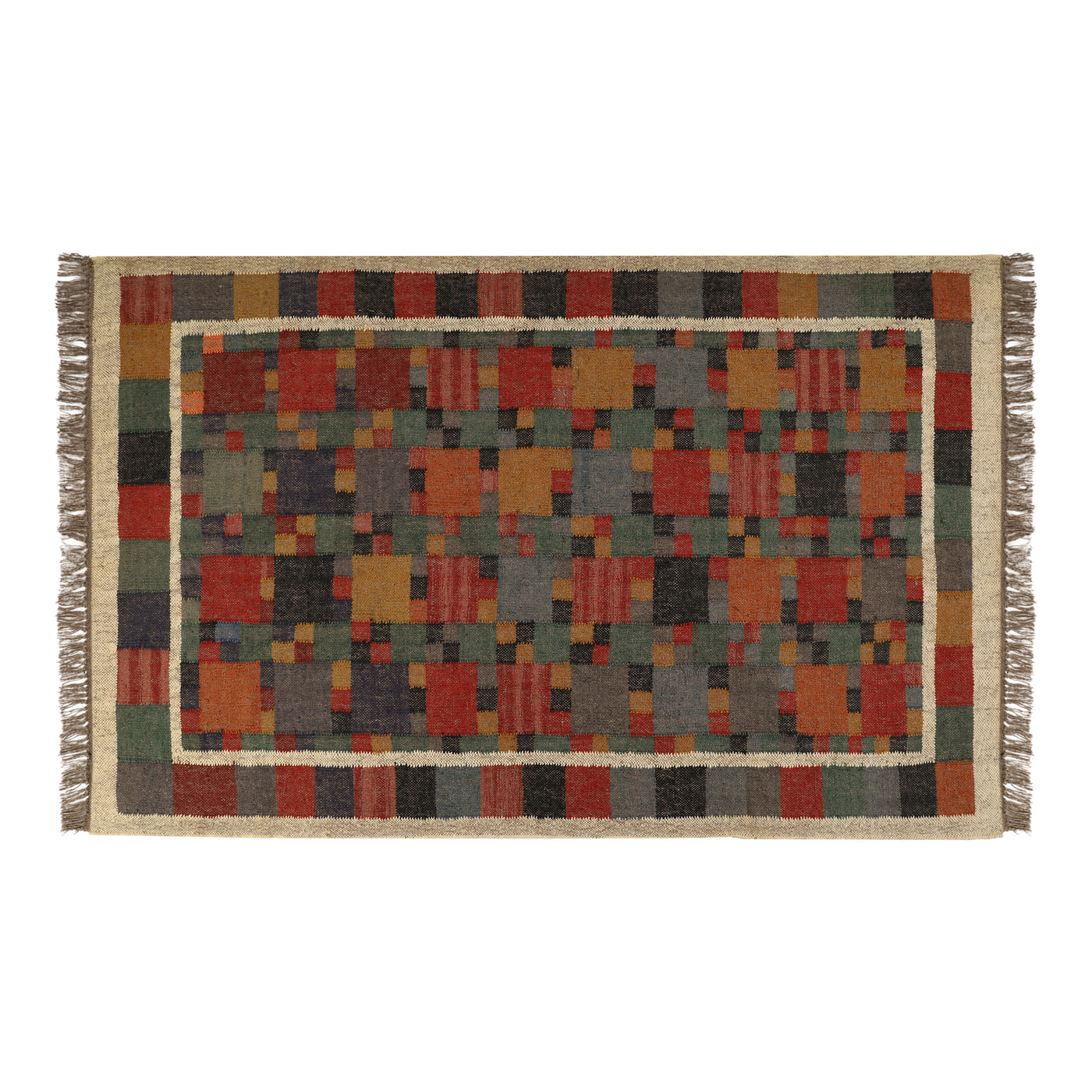 Handwoven 8x12 Kilim Wool Jute Rug for Southwestern Tribal Interiors - 2 x 3 Feet