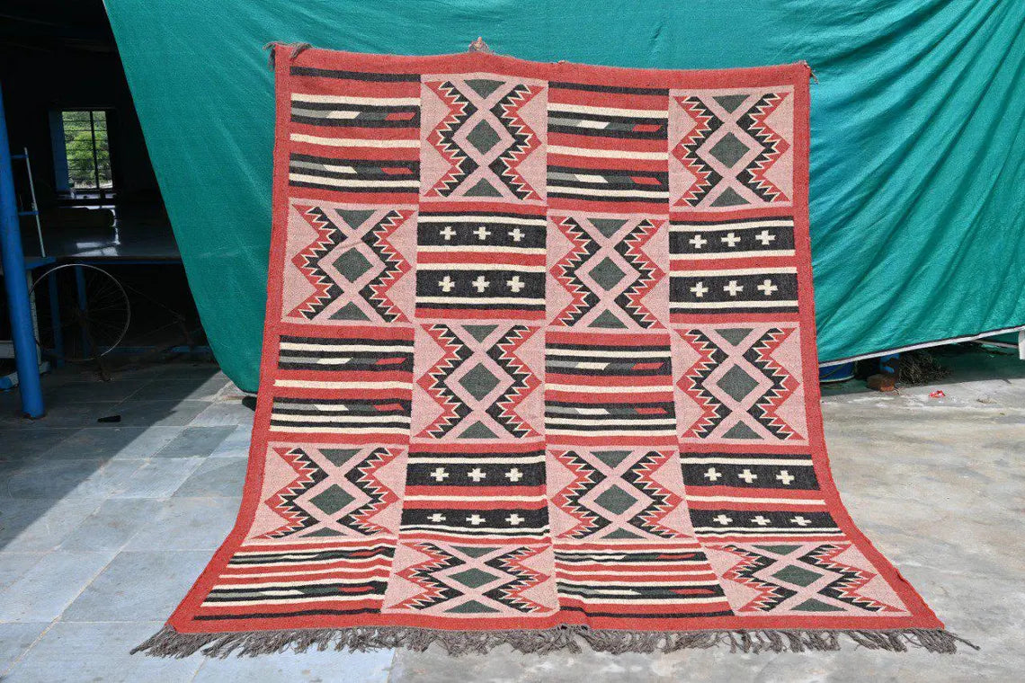 Kilim Rug Handwoven Multi Color Wool & Jute | Indian Dhurrie