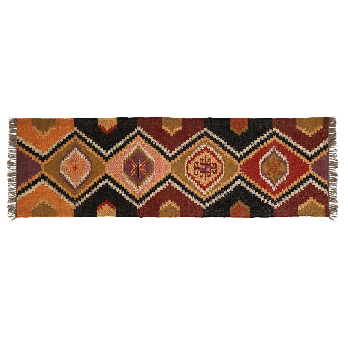 Vintage Handwoven Wool Jute Kilim Runner – Tribal Geometric Bohemian Style
