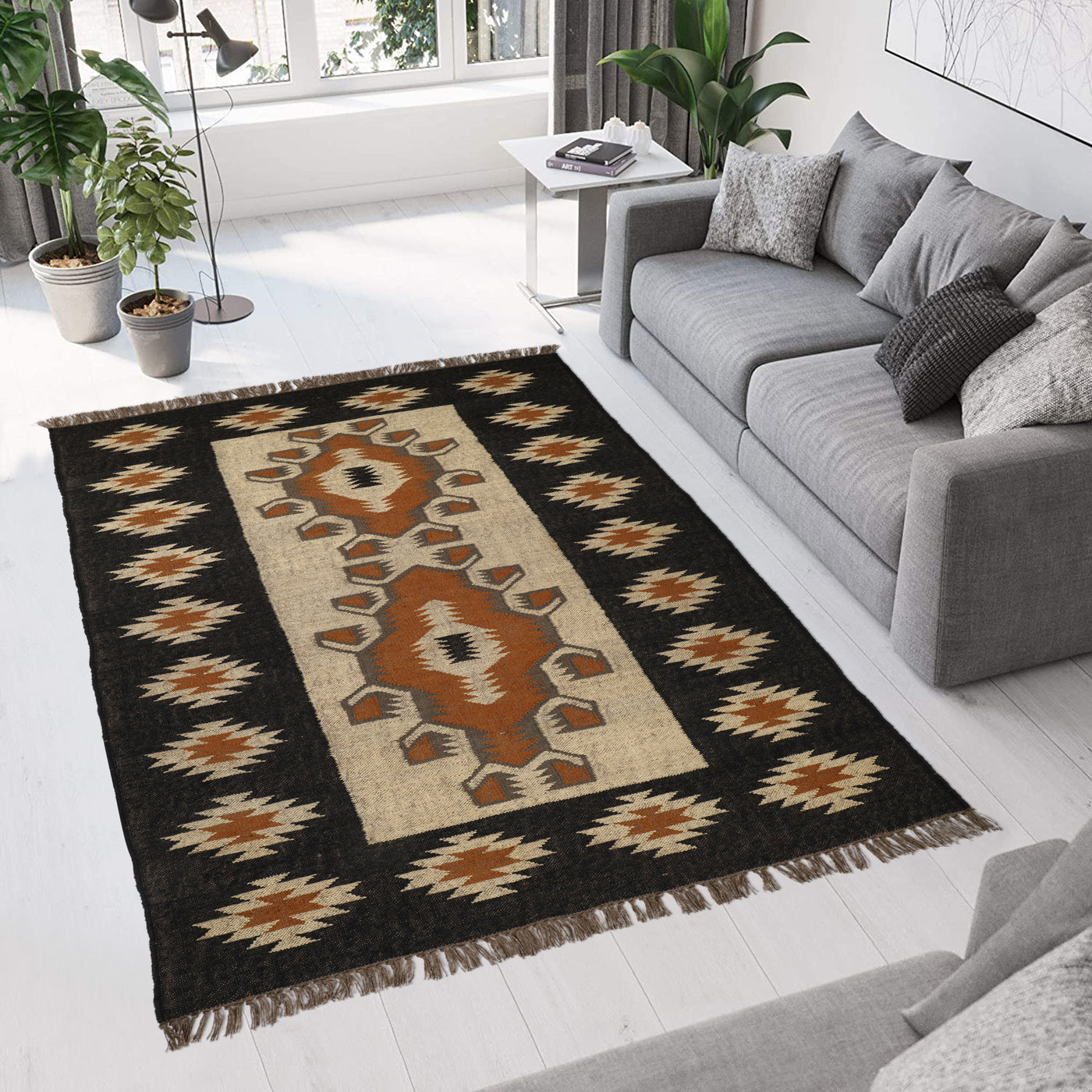 Kilim Wool Jute Rug – Handwoven Southwestern Tribal Area Rug