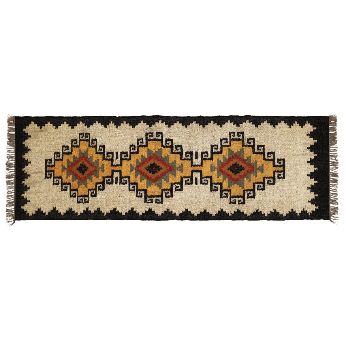 Handwoven Wool & Jute Kilim Runner – Traditional Indian Geometric Dhurrie