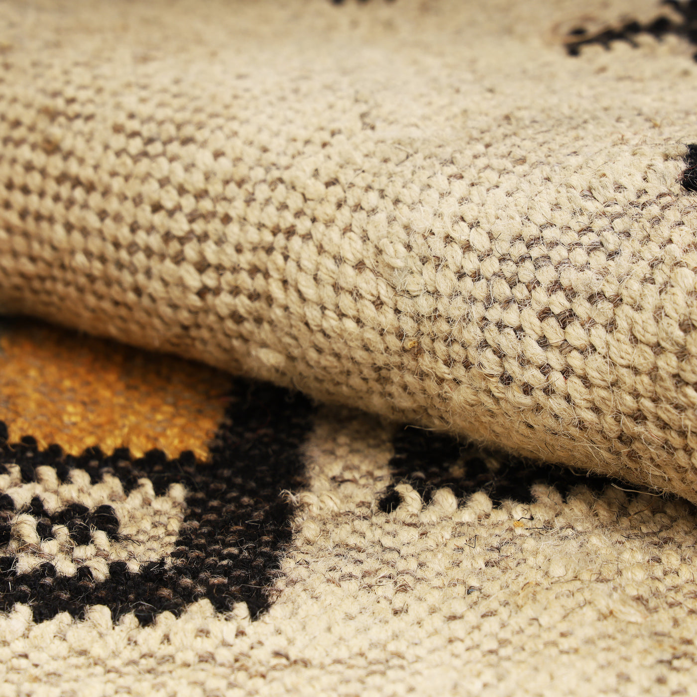 Handwoven Wool & Jute Kilim Runner – Traditional Indian Geometric Dhurrie - 2 x 3 Feet