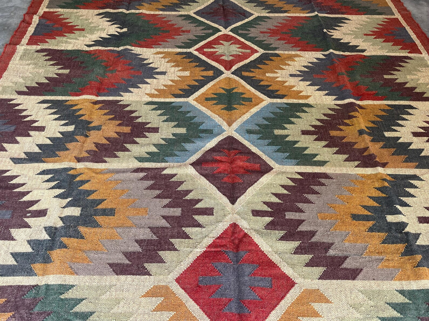 Bring authentic artistry and heritage into your home with our Handwoven Wool & Jute Kilim Rug, a beautiful fusion of tradition and functionality. Each piece is crafted by skilled artisans at SanwariyaRugsExport, using 70% premium wool and 30% natural jute for a perfect balance of softness, strength, and texture.